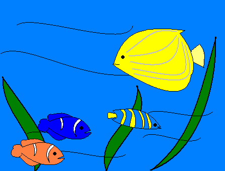 请你说:你是如何画水草的。你是怎样将鱼复制粘贴进来的?