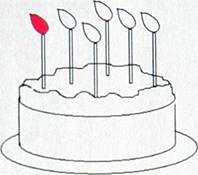 今天是丁丁的生日,看看你们班还有谁是今天过生日,打开教材光盘中名为“生日蛋糕" 的图片(见右图),给蛋糕涂上漂亮的颜色,为他们祝贺生日吧!(注意要用吸管工具和放大镜工具)
