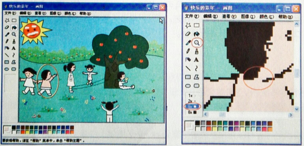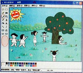 1..在“画图"程序中打开教材光盘中的图片文件“快乐的童年"。