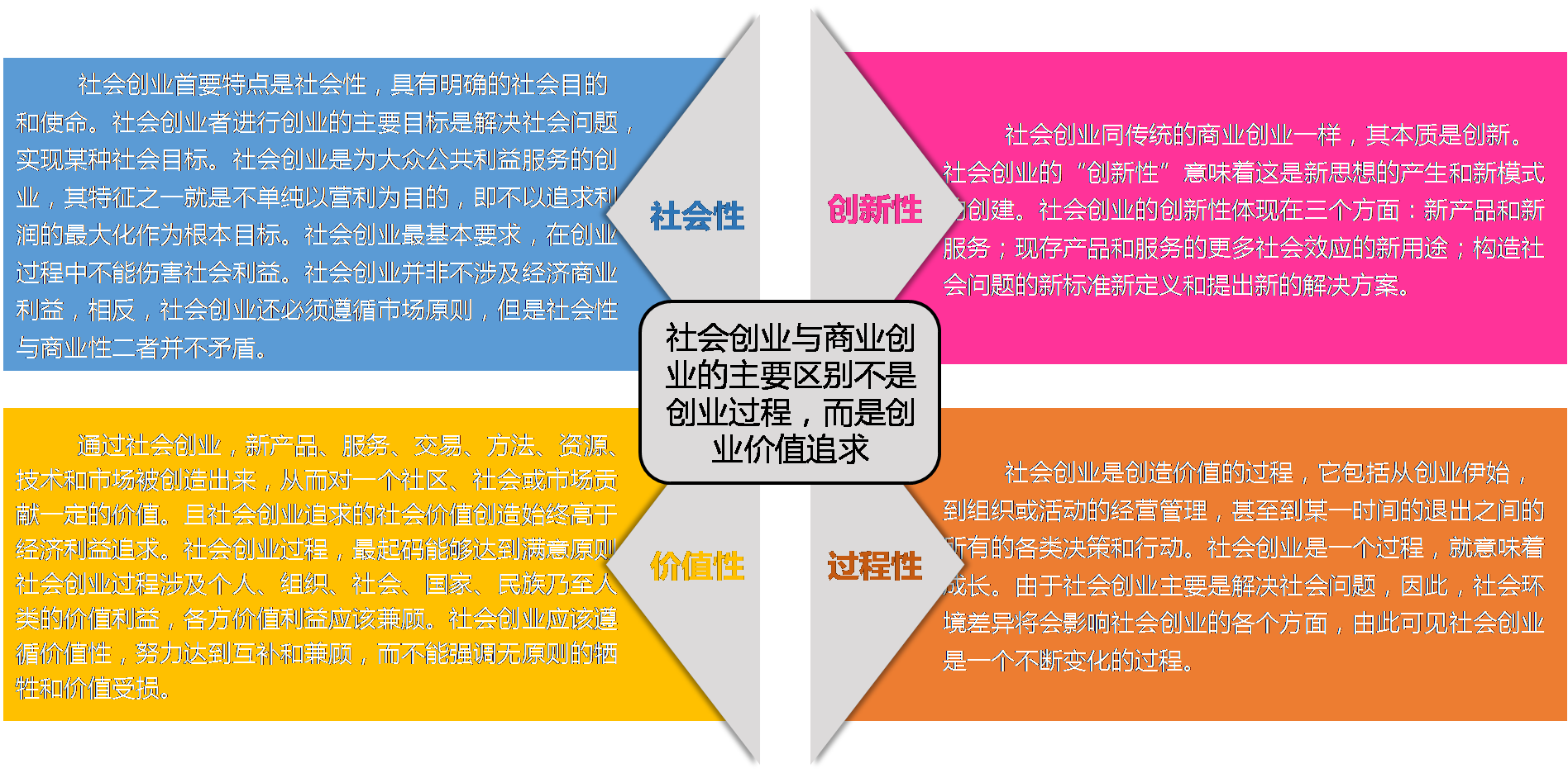社会创业(Social Entrepreneurship,SE),也译为“社会创新”、“公益创业”,是个人、机构和网络通过捕捉新机会,处理社会机构供应不足或者应对社会环境、产品分配不均,从而挑战传统结构失效的产物。社会创业是弥补市场失灵和政府失灵的手段之一,以社会责任为导向,解决社会问题。社会创业是通过商业手段创造价值,社会利益是社会创业追求的最终目标,因此社会创业兼顾社会效益和经济效益。