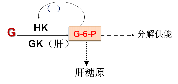 I-III 型HK主要接受 G-6-P 的反馈抑制,而IV 型的GK 是肝脏特有的,不受 G-6-P 抑制。