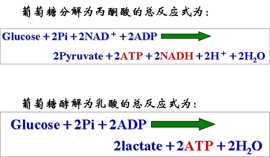 一、糖酵解(glycolysis):胞液中,1分子葡萄糖分解成为2分子丙酮酸的过程。