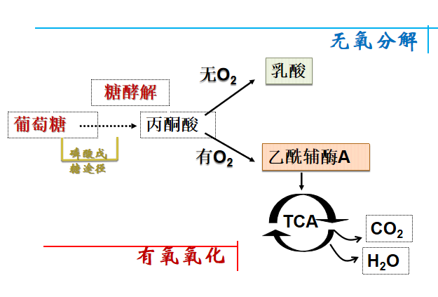 2、某些组织获得能量的方式。如:红细胞无线粒体只能通过葡萄糖无氧酵解获得能量; 白细胞、神经和骨髓等代谢活跃的组织,即使在有氧条件下,也进行无氧酵解获得能量。