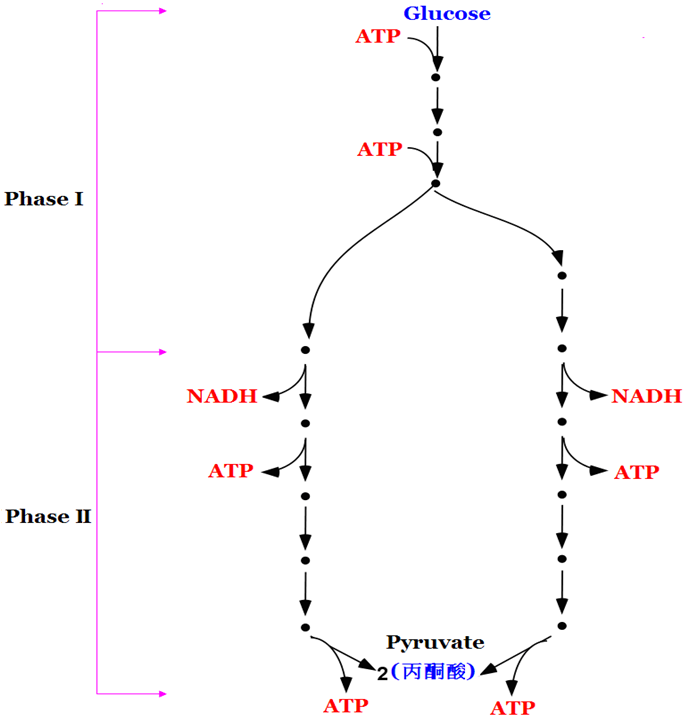 一共有10步酶促反应,是糖无氧酵解和有氧氧化的共有途径。分为两个阶段:耗能阶段和产能阶段。