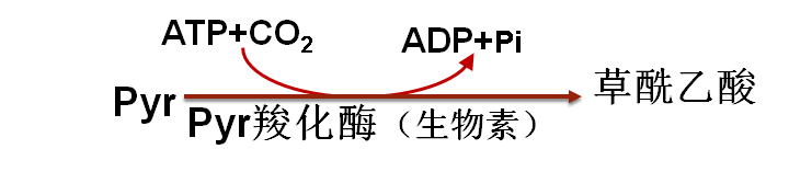 2.中间产物的回补:三羧酸循环是一个开放的循环,中间产物可以被消耗。丙酮酸羧化酶可以合成草酰乙酸,补充三羧酸循环中间物的消耗。