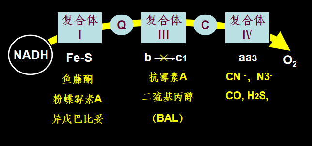 (1)呼吸链抑制剂:阻断呼吸链递氢及递电子功能,从而影响氧化磷酸化