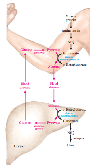 (一)氨通过丙氨酸-葡萄糖循环从骨骼肌运往肝