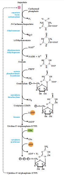重点内容:嘧啶环各元素的来源,嘧啶核苷酸的抗代谢物