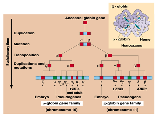 2.基因家族的不同成员成簇地分布于不同染色体上,编码一组功能上紧密相关的蛋白质。如球蛋白基因家族。