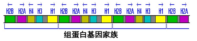 1.基因家族成簇地分布在某一条染色体上,同时发挥作用,合成某些蛋白质。如组蛋白基因家族成簇的集中在7号染色体。