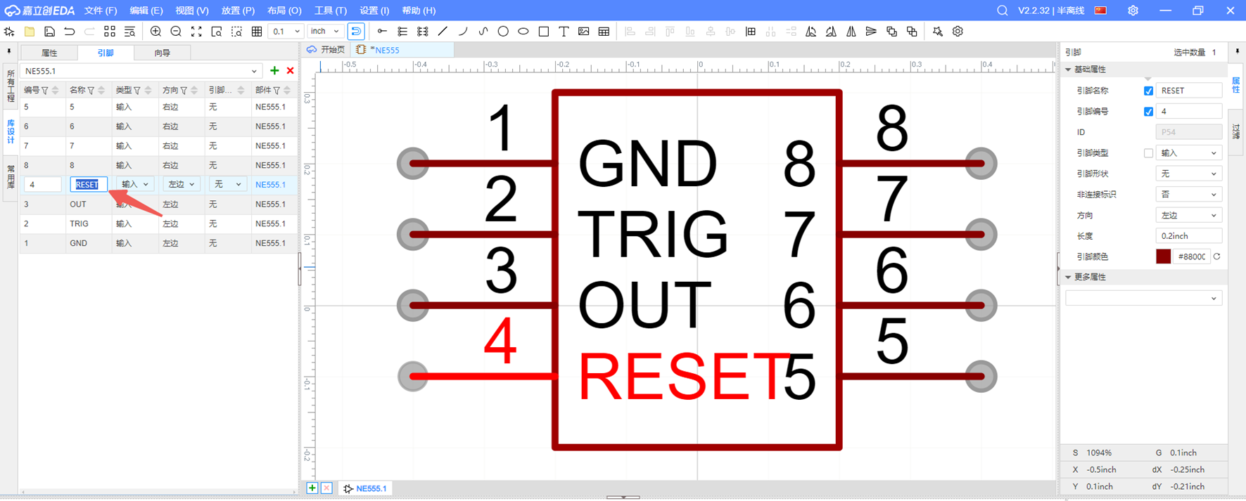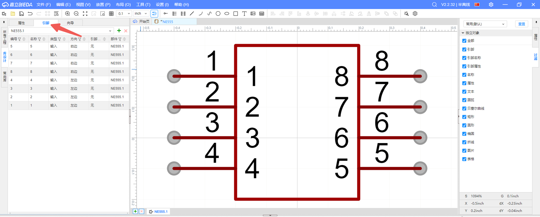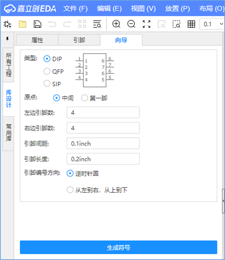 嘉立创EDA(专业版)支持符号向导功能快速生成符号,这里,以NE555定时器符号为例进行演示。在快速开始预览卡片里,点击“新建”元件按钮,在弹出“新建器件”窗口中,可以下拉选择为元件类型。填写输入元件名称为NE555,选择元件分类,添加描述信息等,然后“点击保存”,完成创建。