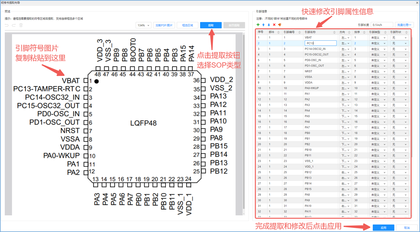 这里,以STM32F103C8T6(LQFP-48)为例,进行规格书提取向导设计演示。