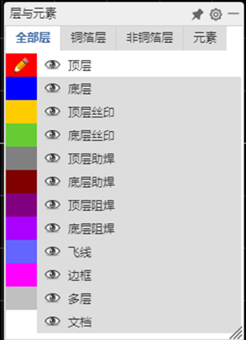 PCB设计会经常使用层工具,它可以随意拖动位置,用来展示当前活动层。