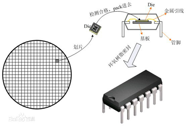 封装,Package,就是把集成电路装配为芯片最终产品的过程。把生产出来的集成电路裸片(Die)放在一块起到承载作用的基板上,把管脚引出来,然后固定包装成为一个整体。