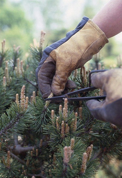 2、出枝有轮生习性的树种如松杉类,应按最佳角度选留1—2个分枝,余者删去。