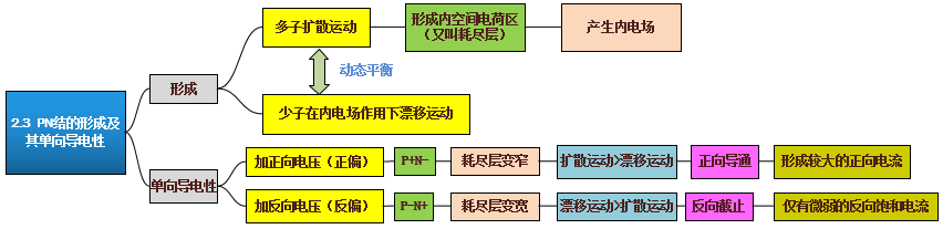 采用不同的掺杂工艺,通过扩散作用,将P型半导体与N型半导体制作在同一块半导体(通常是硅或锗)基片上,在它们的交界面就形成空间电荷区称为PN结(英语:PN junction)。PN结具有单向导电性,是电子技术中许多器件所利用的特性,例如半导体二极管、双极性晶体管的物质基础。其中,P是positive的缩写,N是negative的缩写。