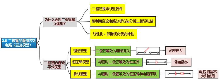 这个时候我们想到了线性化。即在直流电源作用情况下,可以用线性元件来等效二极管,这样就可以用以前电阻电路的分析方法求解问题了。