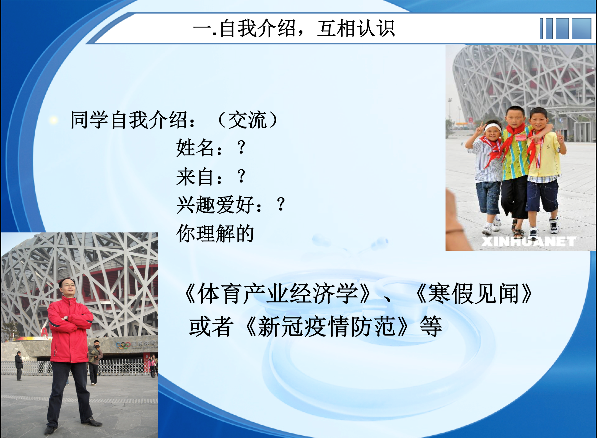 《体育产业经济学》、《疫情防控认知》或者《寒假见闻》等