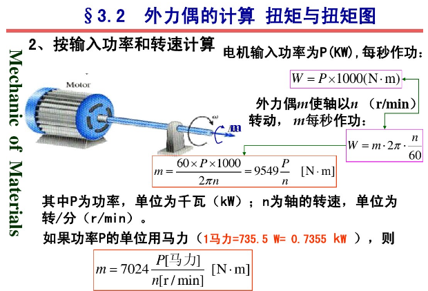 外力偶矩与功率和转速之间的关系