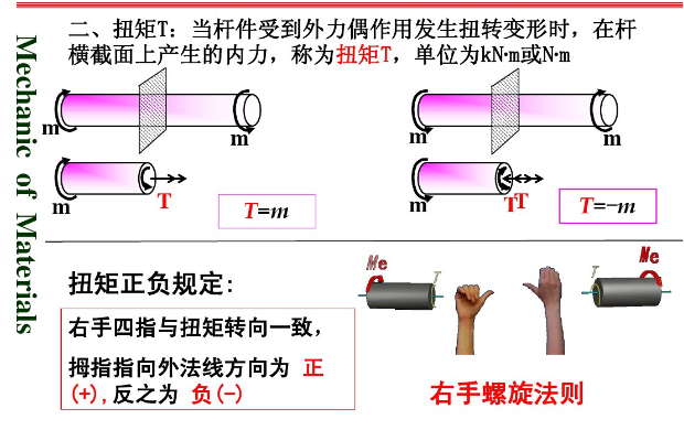 扭矩的符号规定:按右手螺旋法则判断