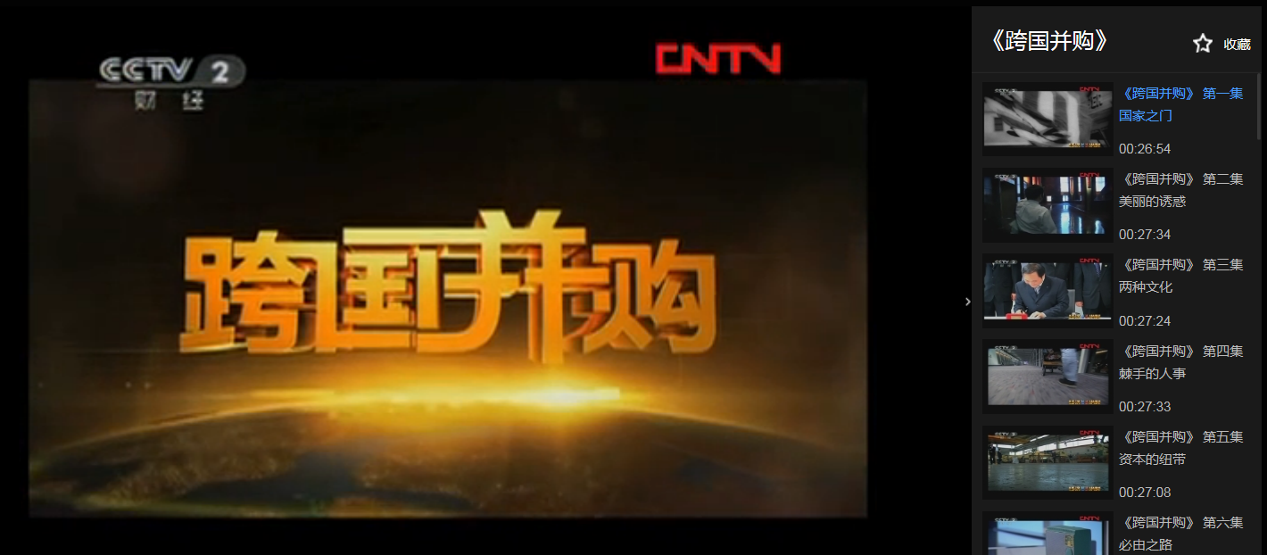 央视经济半小时播放的纪录片《跨国并购》用国际化多维度视角,深度解读跨国并购经典案例,揭开跨国并购背后的韬略与机谋、博弈与利益、交锋与合作,对正在融入全球经济链条的中国企业,具有很高的借鉴价值。