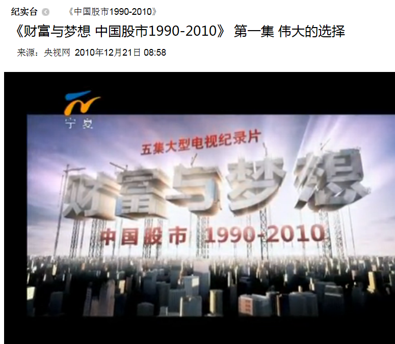 1. 央视纪录片《财富与梦想 中国股市1990-2010》共五集