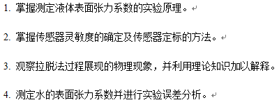 金属环固定在传感器上,将该环浸没于液体中然后渐渐拉起圆环,当它从液面拉脱瞬间传感器受到的拉力的大小为