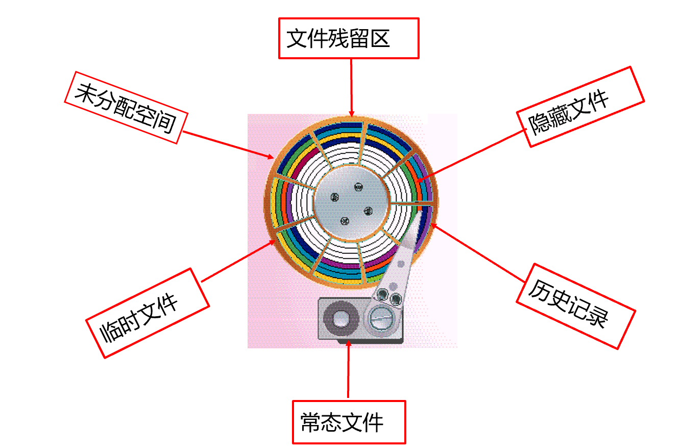 (5)其他数据区中可能存在的电子数据,如隐藏分区、未分配空间(Una llocated Space) 、松弛空间(Slack Space) 。