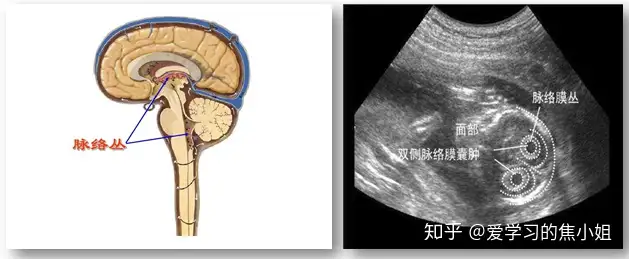 脉络丛囊肿:是胎儿发育中的侧脑室的脉络丛中发现的超声离散的小囊肿(3mm以上),一般出现于14至24周妊娠。