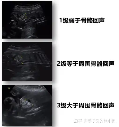 肠管强回声:胎儿肠管均匀强回声区,其回声强度等于或大于周围骨骼回声,分为3级。