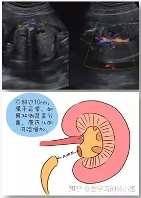 胎儿肾盂分离:与正常人相比任何程度的肾集合系统的扩张都增加了出生后泌尿系统病理性变化的风险,且随扩张程度的增加而增加。