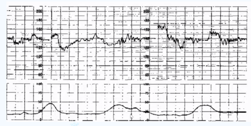 外监护属于无创性监护,目前临床常见的外监护设备大多基于超声多普勒技术探测胎心率,并结合宫腔压力探头探测宫腔压力或腹腔压力的变化,据此将胎心率、宫腔压力、母体心率共同描记构成胎心监护图形。