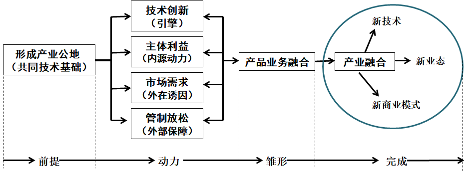 产业融合是一个从技术融合开始,再到业务融合,再到市场融合的一个逐步实现的过程。