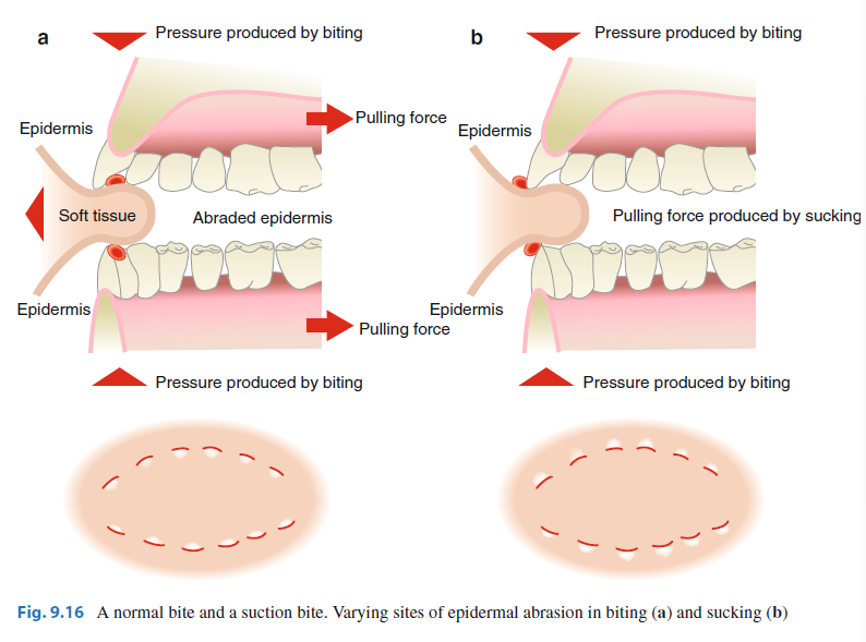 咬伤(bite mark)是指人或动物的上下颌牙齿咬合所致的损伤,在攻击和防御时均可形成。由于人体牙弓形态、牙的排列和疏密不同,加之牙有修复、脱落等变化的影响,所以,牙的咬痕具有良好的个体识别特征。