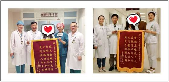 实际上,在此之前的两天,小曼的妈妈和姐姐已经把锦旗送到了我的门诊。合影的时候,我虽然笑得头发都飞起来了,心里却很忐忑。毕竟小曼还没有排气,警报并没有解除,结局尚不确定.......我说锦旗送得有些早了,出院后再送也来得及!