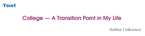 1 When I first entered college as a freshman, I was afraid that I was not able to do well in my studies. I was afraid of being off by myself, away from my family for the first time. Here I was surrounded by people I did not know and who did not know me. I would have to make friends with them and perhaps also compete with them for grades in courses I would take. Were they smarter than I was? Could I keep up with them? Would they accept me?