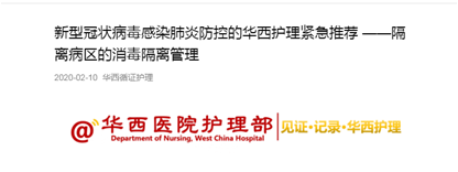 18.新型冠状病毒感染肺炎防控的华西护理紧急推荐 ——隔离病区的消毒隔离管理
