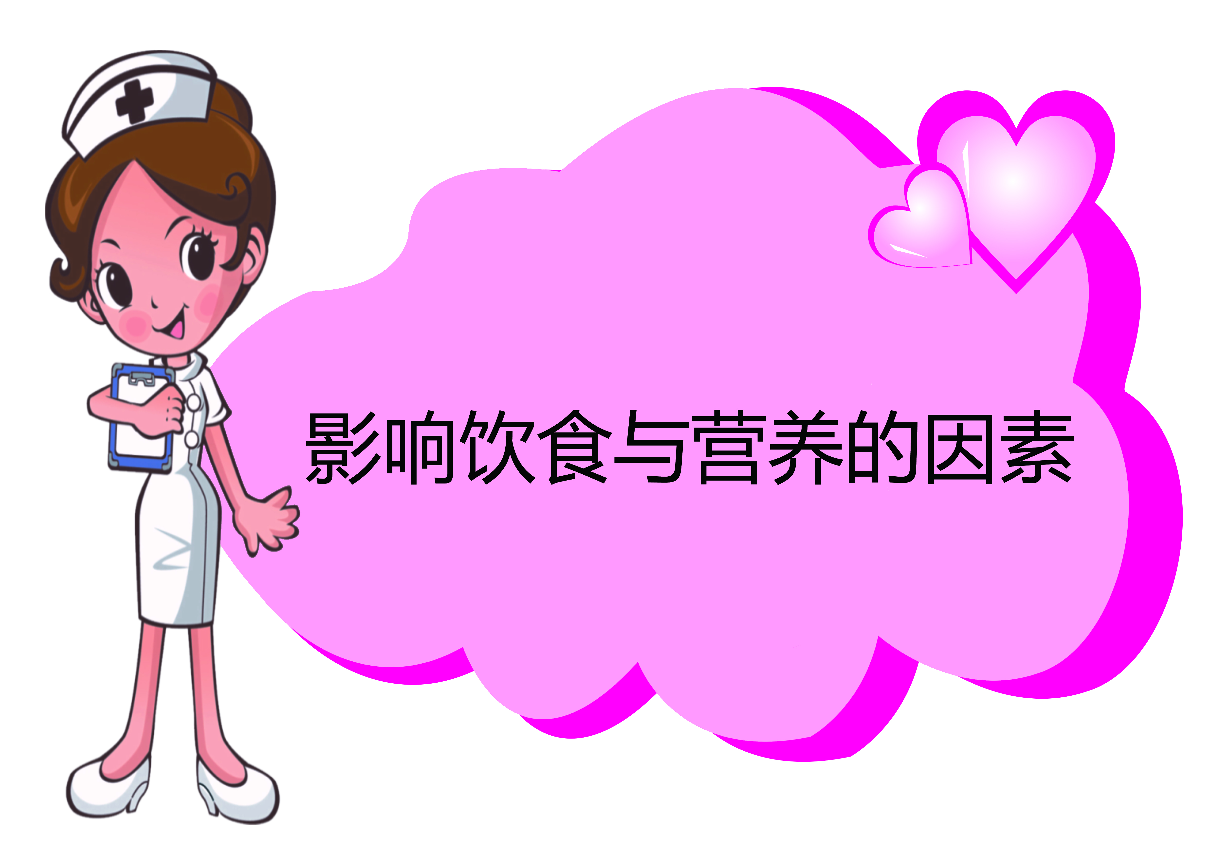 3.疾病 口腔、胃肠道疾患对食物的摄取、消化、吸收影响很大;感染、甲亢、恶性肿瘤等疾病使机体对营养的需求增加;危重、肌肉萎缩、瘫痪的患者因为饮食自理能力下降,影响了营养的获得。