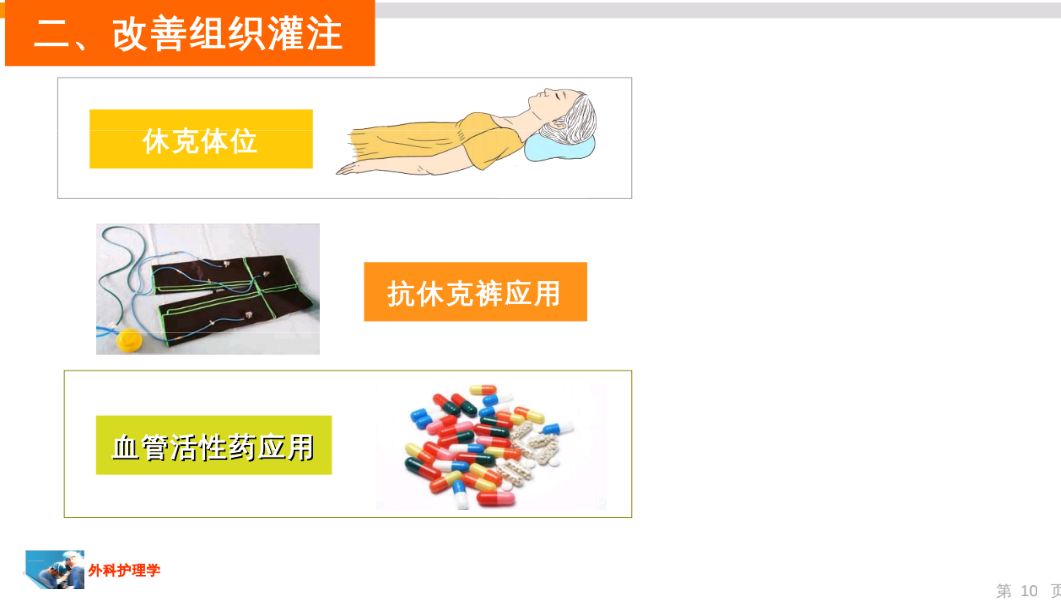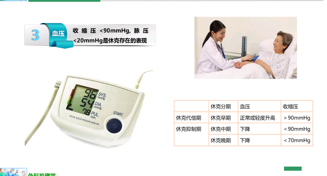 教学重点 | 1、休克的概念及病因分类。 2、休克的临床表现/处理原则。 3、休克的护理评估/护理措施。 | |