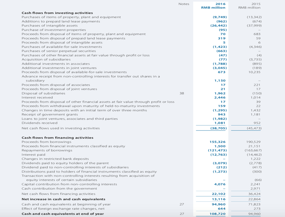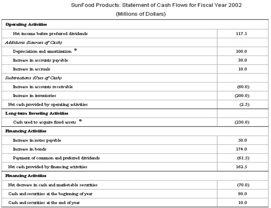 √Activities in each area that bring in cash represent sources of cash while activities that involve spending cash are uses of cash.