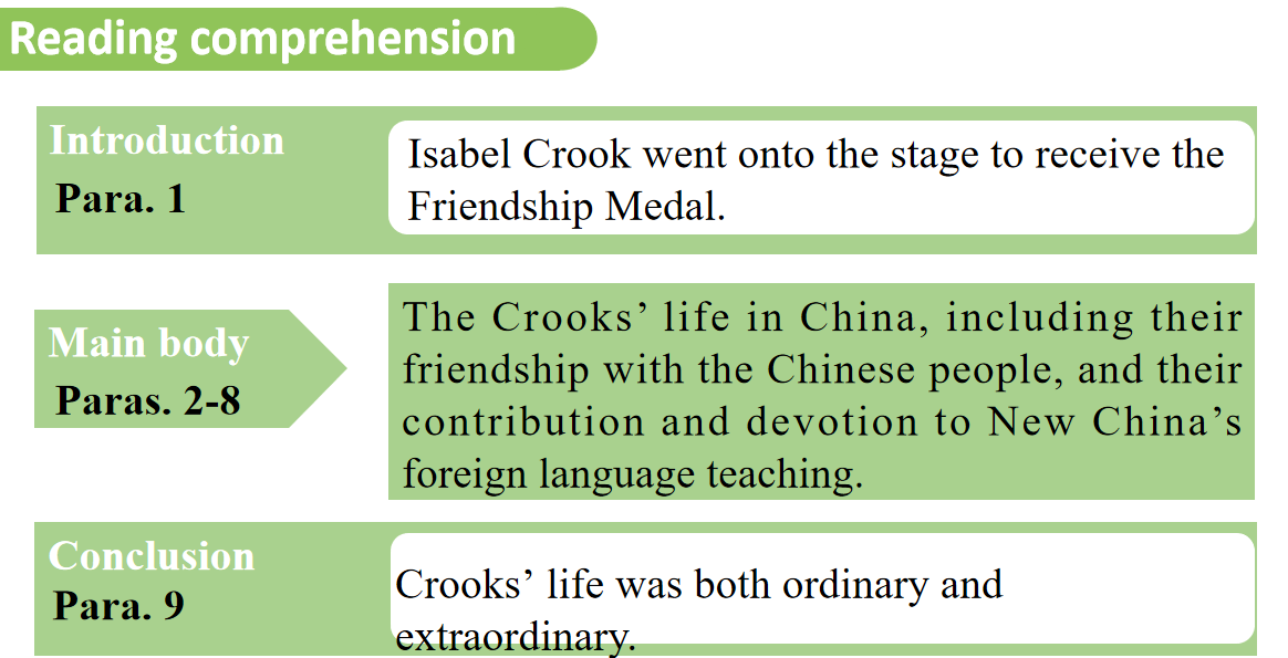 8 The Crooks, who blazed a trail in the field of English teaching in New China, contributed to the training of generation after generation of foreign language talent in the fields of foreign affairs, history, trade and finance, journalism, education, etc. They were all inspired by the Crooks’ spirit of selfless devotion. In the early 1960s, when the Soviet Union withdrew all their experts from China, the Crooks chose to stay. They said, “China is faced with economic difficulties. At a crucial moment like this, we can’t just leave.” So, without hesitation, they turned down the job offer from the University of Leeds.