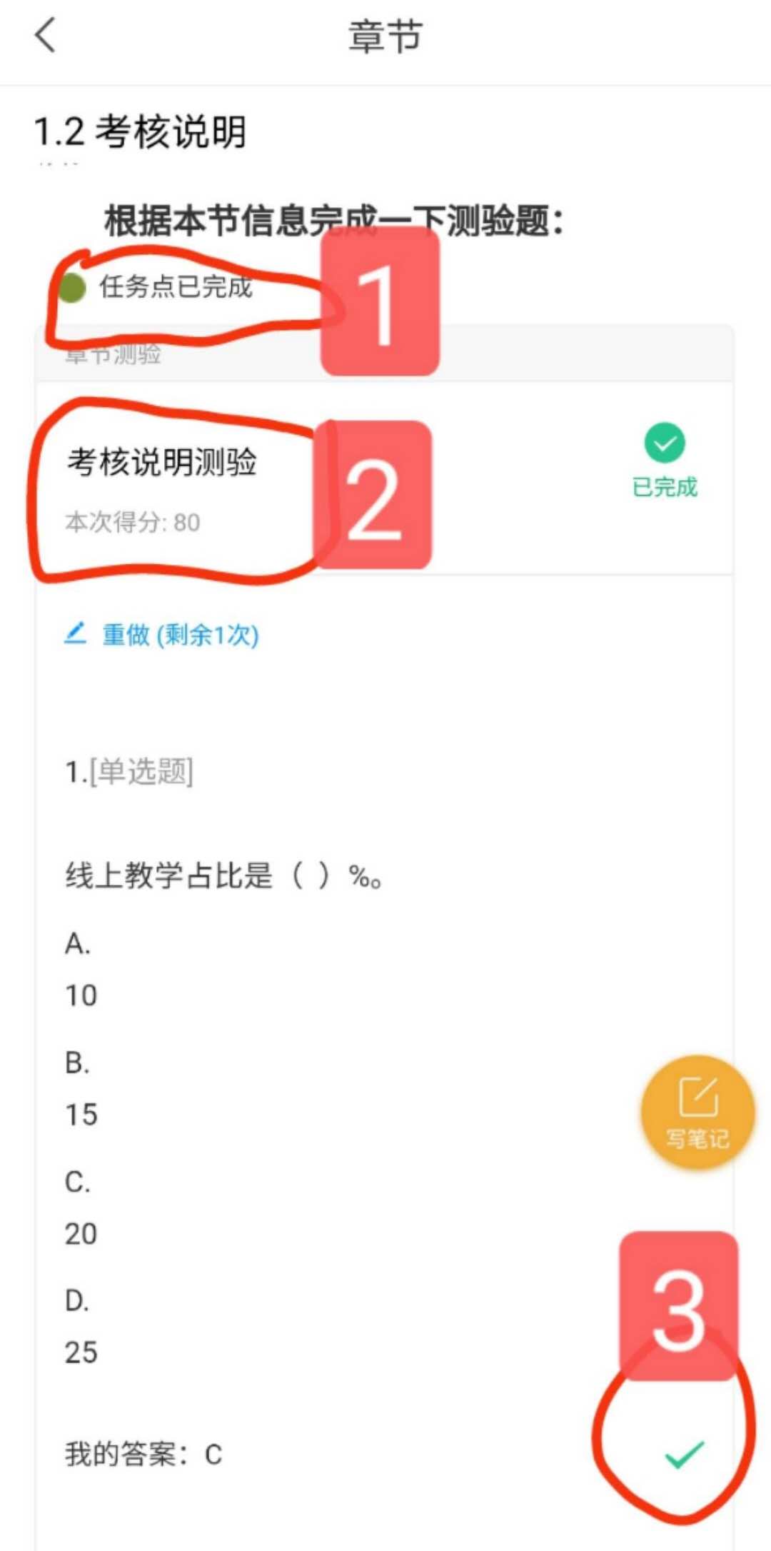 2.一个章节测验算作一个任务点,无论其中包含几个测试题。