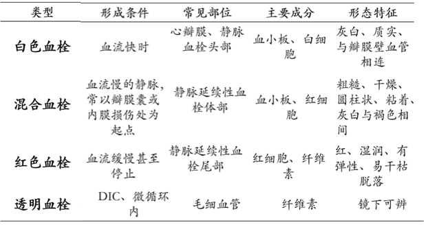 血栓类型可分为以下四种: