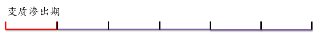 即浆液、纤维素性渗出性病变,结缔组织中的胶原纤维肿胀、断裂、崩解成无结构的颗粒状、片状或网状的红染物质,酷似纤维素,因此,称之为纤维素样坏死(纤维素样变性)。病灶中有少量淋巴细胞、浆细胞、中性粒细胞和单核细胞浸润。本期持续约1个月。