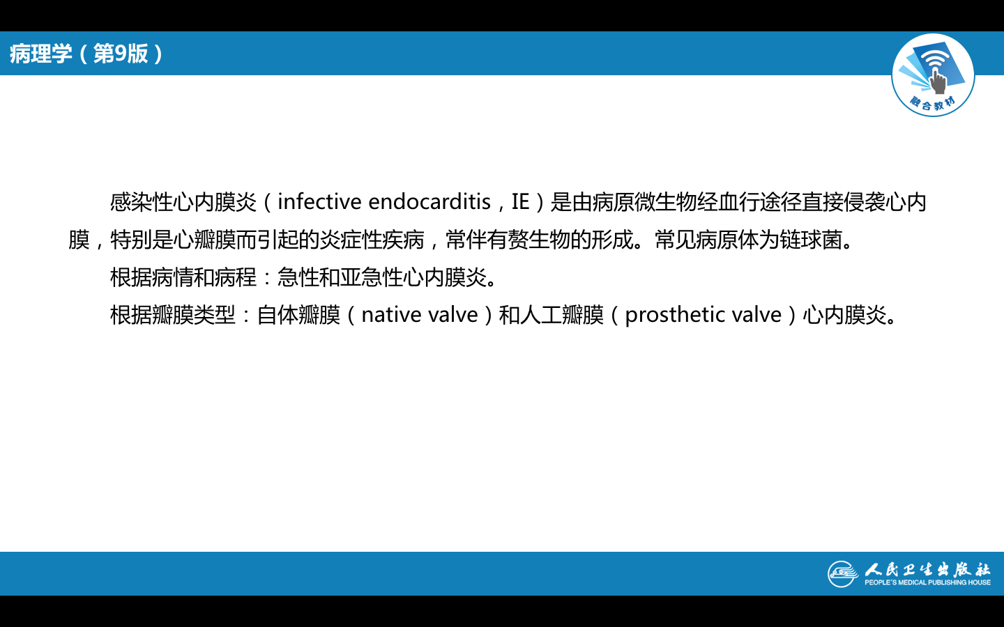 感染性心内膜炎(infective endocarditis)是指由病原微生物直接侵犯心内膜而引起的炎症性疾病。病原微生物主要是细菌,又称细菌性心内膜炎。本病可分为急性感染性心内膜炎和亚急性感染性心内膜炎两种。