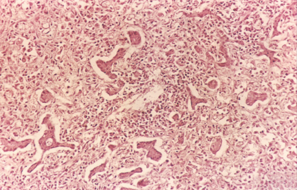 (3)间叶细胞及纤维母细胞的增生:间叶细胞具有多向分化的潜能,存在于肝间质内,肝炎时可分化为组织细胞。在反复发生严重坏死病例,由于大量纤维组织增生可发展成肝纤维化及肝硬化。