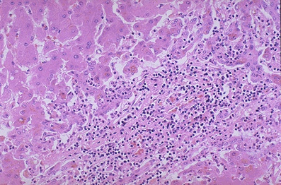 各型肝炎病毒所引起的肝损害的机制不尽相同。例如:现认为是HAV特异的、HLA限制的细胞免疫应答导致肝细胞坏死。一般认为HBV相关的肝损害与CD8+T淋巴细胞对感染的肝细胞的杀伤有关。CD8+T淋巴细胞识别并结合肝细胞膜上由HLA-Ⅰ类分子提呈的病毒抗原,发挥淋巴细胞毒作用,导致肝细胞的变性和坏死。此外,HBV感染引起的肝损害还与自身免疫反应和免疫复合物沉积有关。肝细胞感染了HBV后,暴露出的肝特异性脂蛋白抗原可作为自身抗原诱导机体产生自身免疫反应,直接或间接地损害肝细胞。存在于肝细胞表面的HBV抗原,在和相应抗体结合后形成免疫复合物,可通过激活补体系统参与破坏肝细胞。