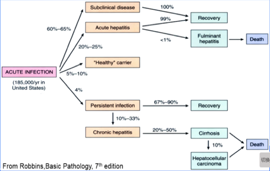 | 转成慢性肝炎 | 无 | 5%~10% | >70% | <5% | 一般不转为慢性 | 无 |