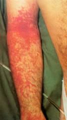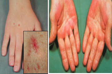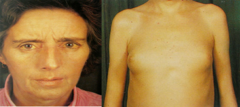 (1)对激素的灭活作用减弱:由于肝对雌激素灭活作用减弱,导致雌激素水平升高,体表的小动脉末梢扩张形成蜘蛛状血管痣和肝掌(患者手掌大、小鱼际处常发红,加压后褪色)。此外,男性患者可出现睾丸萎缩、乳腺发育症。女性患者出现月经不调,不孕等。