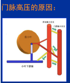 ①窦性阻塞:由于肝内广泛的结缔组织增生,肝血窦闭塞或窦周纤维化,使门静脉循环受阻;②窦后性阻塞:假小叶及纤维结缔组织压迫小叶下静脉,使肝窦内血液流出受阻,继而阻碍门静脉血液流入肝血窦;③窦前性阻塞:肝动脉小分支与门静脉小分支在汇入肝窦前形成异常吻合,使压力高的动脉血流入门静脉。门静脉压升高后,胃、肠、脾等器官的静脉血回流受阻。